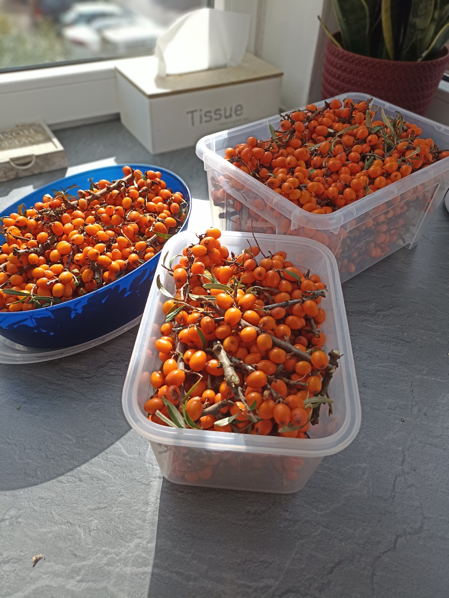 - Rakytník – sklízí se začátkem září. Já nechávám bobulky na větvičkách, které dávám přímo zamrazit do mrazáku. Později je už jen hezky odlupuji do čaje. Skvělý je i ve formě "shootu".